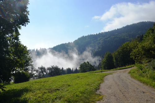 Včeraj zjutraj, ravno so se jesenske meglice poslavljale po gozdnih vogalih, sva se z možem po dolgem času sama podala na tek. Od naše domačije po lepem makadamu, po gozdu in mimo sosedov, proti najinemu večnemu cilju, Strojni.