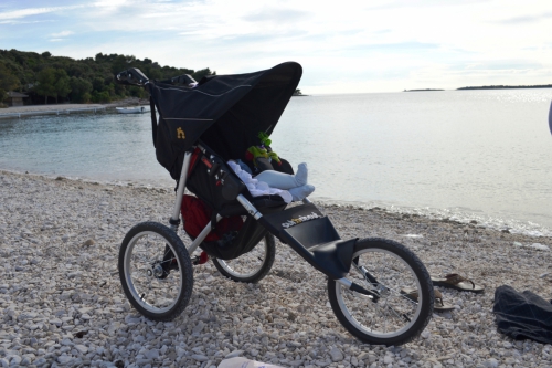 Ima pa tek z vozičkom tudi dobre strani, vedno imam s sabo pijačo, majico, telefon. In ne ukvarjam se toliko sama s sabo, ampak bolj skrbim za otrokovo udobje – mu je dovolj toplo, ali preveč piha, ga moti sonce. In vsak dan znova sem vesela, da se naš fantek rad vozi v vozičku! Danes je že cel korenjak, ima 8 mesecev in z velikim zanimanjem opazuje svet, ki drvi mimo. Zato z veseljem izkoriščava toplo jesensko vreme in obilico časa, ki ga imava vsak dopoldan.