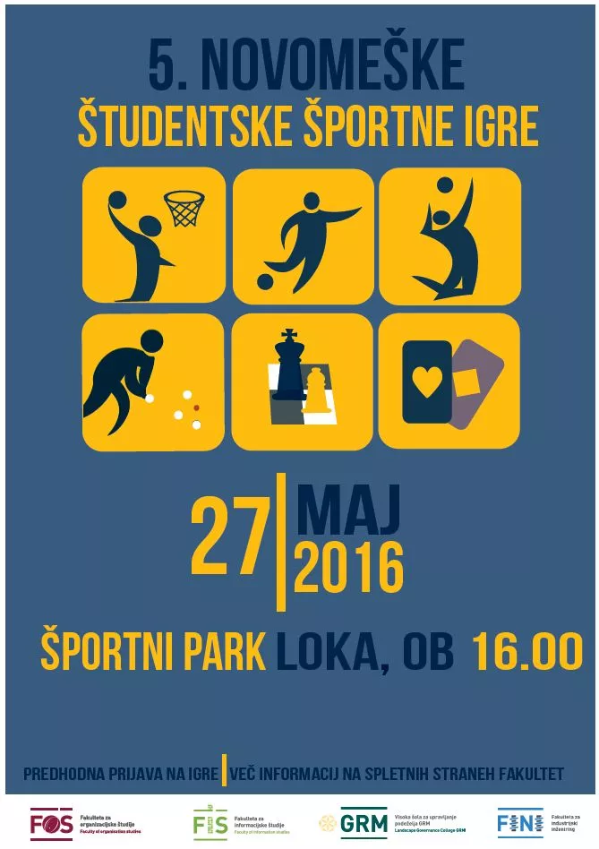 V petek, 27. maja 2016, se bodo v športnem parku Loka v Novem mestu odvile že 5. novomeške študentske športne igre.