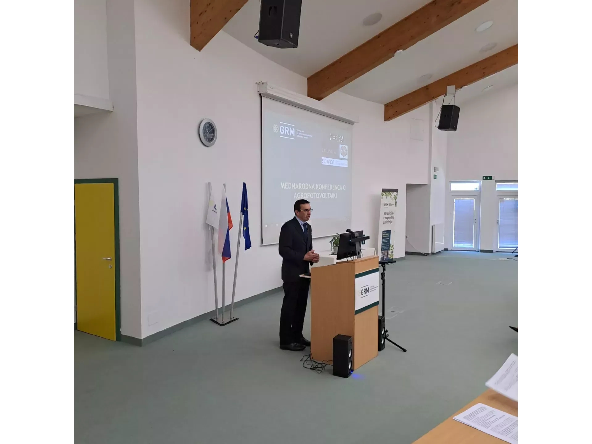 Visoka šola za upravljanje podeželja Grm Novo mesto je v petek, 6. oktobra 2023, organizirala mednarodno konferenco na temo Agrofotovoltaike. V uvodu sta udeležence nagovorila gostiteljica, izr. prof. dr. Lea-Marija Colarič-Jakše, dekanja Visoke šole za upravljanje podeželja Grm Novo mesto ter minister za okolje, podnebje in energijo, mag. Bojan Kumer.