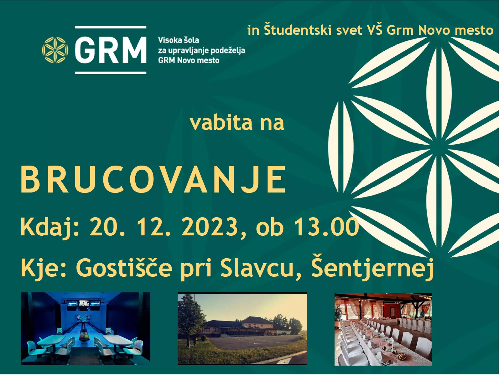 Prišli smo do zadnjega meseca v letu – decembra, ki velja za najbolj praznično obarvanega, družinskega, pravljičnega in dogajanja polnega. Zato Visoka šola za upravljanje podeželja Grm Novo mesto skupaj s Študentskim svetom prav v tem mesecu pripravlja tradicionalni dogodek – Brucovanje, ki bo v sredo, 20. decembra 2023. Zaradi lažje organizacije vas prosimo, da vašo udeležbo potrdite do 18. 12. 2023 na e-mail natasa.sokac@vsgrm.unm.si.