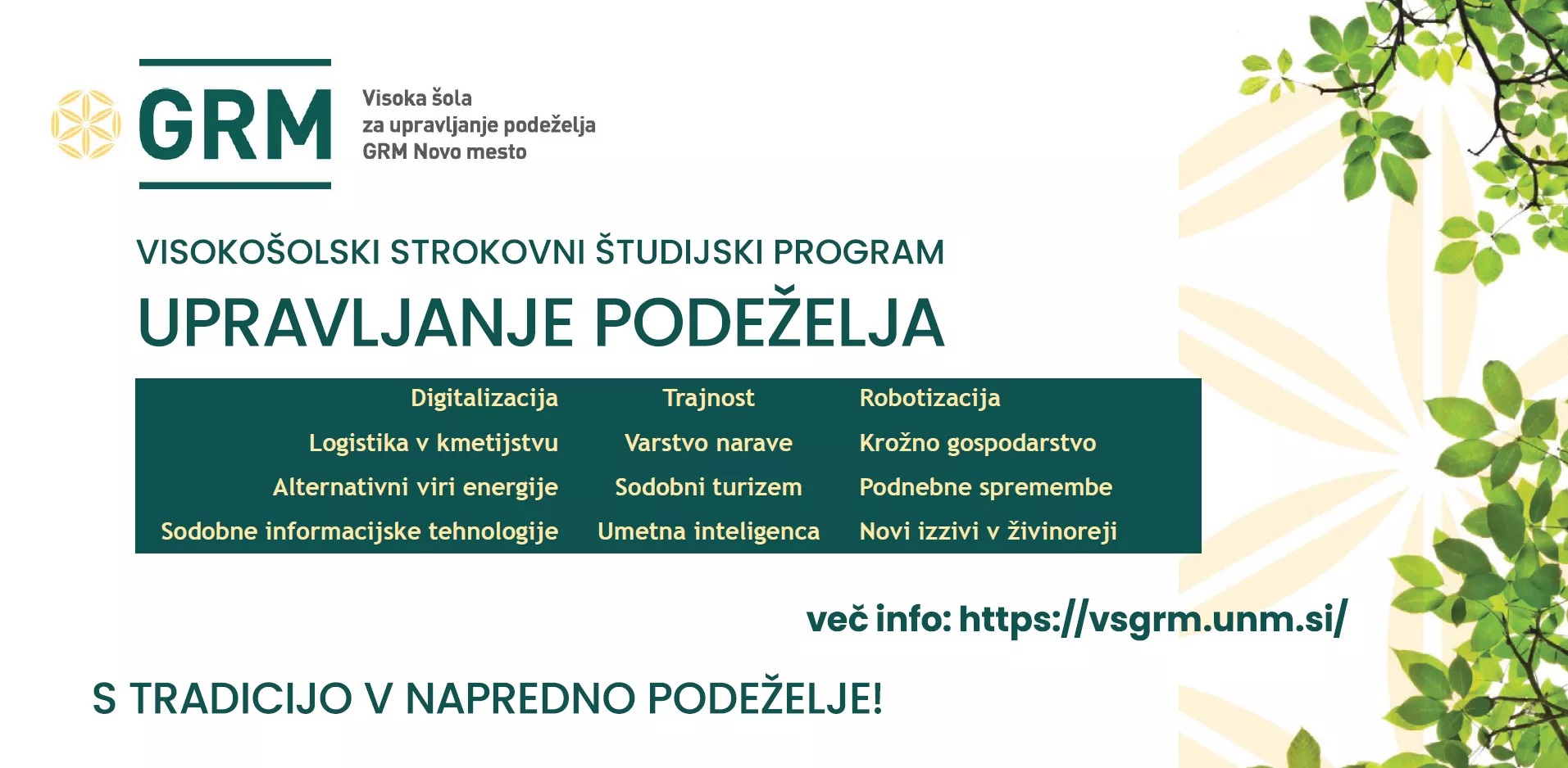 Zakaj Visoka šola za upravljanje podeželja Grm Novo mesto?