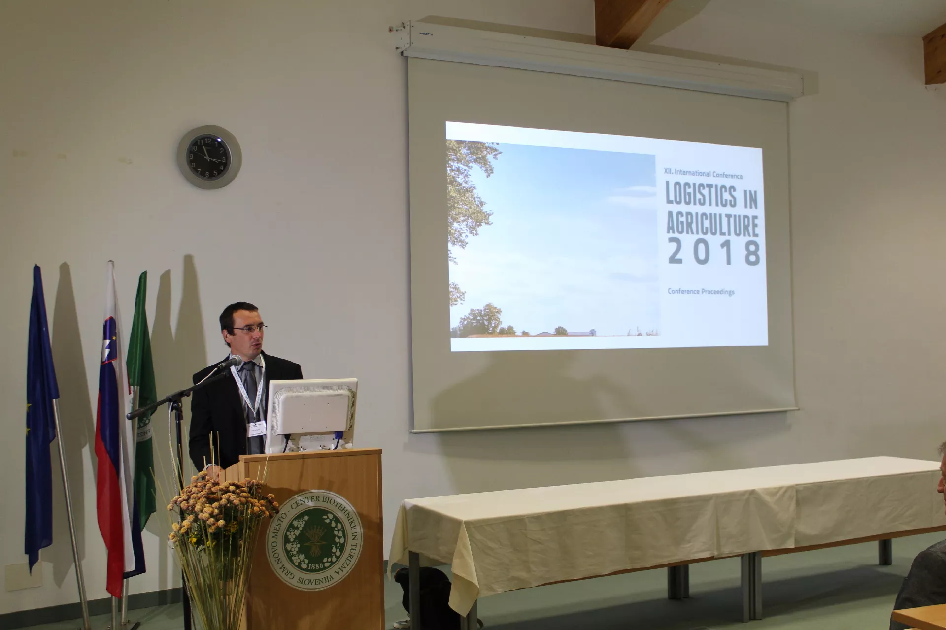 Novo mesto, 15. 11. 2018 – Na Grmu Novo mesto - centru biotehnike in turizma je potekala 12. mednarodna konferenca Logistika v kmetijstvu, ki so jo organizirali Visoka šola za upravljanje podeželja GRM Novo mesto, Grm Novo mesto – center biotehnike in turizma, Fakulteta za logistiko Univerze v Mariboru in Občina Sevnica. Osrednja tematika tradicionalne konference je bila Svetovni izzivi logistike v kmetijstvu, ki utira pot različnim pogledom logistike v povezavi s kmetijstvom. Osrednji predavatelj je predstavil aktualno tematiko z naslovom Digitalizacija v kmetijstvu: Digitalna revolucija v kmetijstvu - Industrija 4.0. Poleg te so na konferenci strokovnjaki in znanstveniki obravnavali še tematiko napredne embalaže za hrano, analizirali lokalno proizvodnjo hrane, krožno gospodarstvo in oskrbovalno verigo hrane. S strani udeležencev so bile velikega zanimanja deležne tudi tematike logistika modernih mest, predelovalna industrija, trajnostni koncept hrane, optimizacija faz pridelave in logistike vina v Sloveniji, možnost dostave lokalno pridelane hrane v lokalno okolje z električnimi in hibridnimi vozili ter kreativne rešitve v logistiki bivanja in oskrbe starejših oseb.