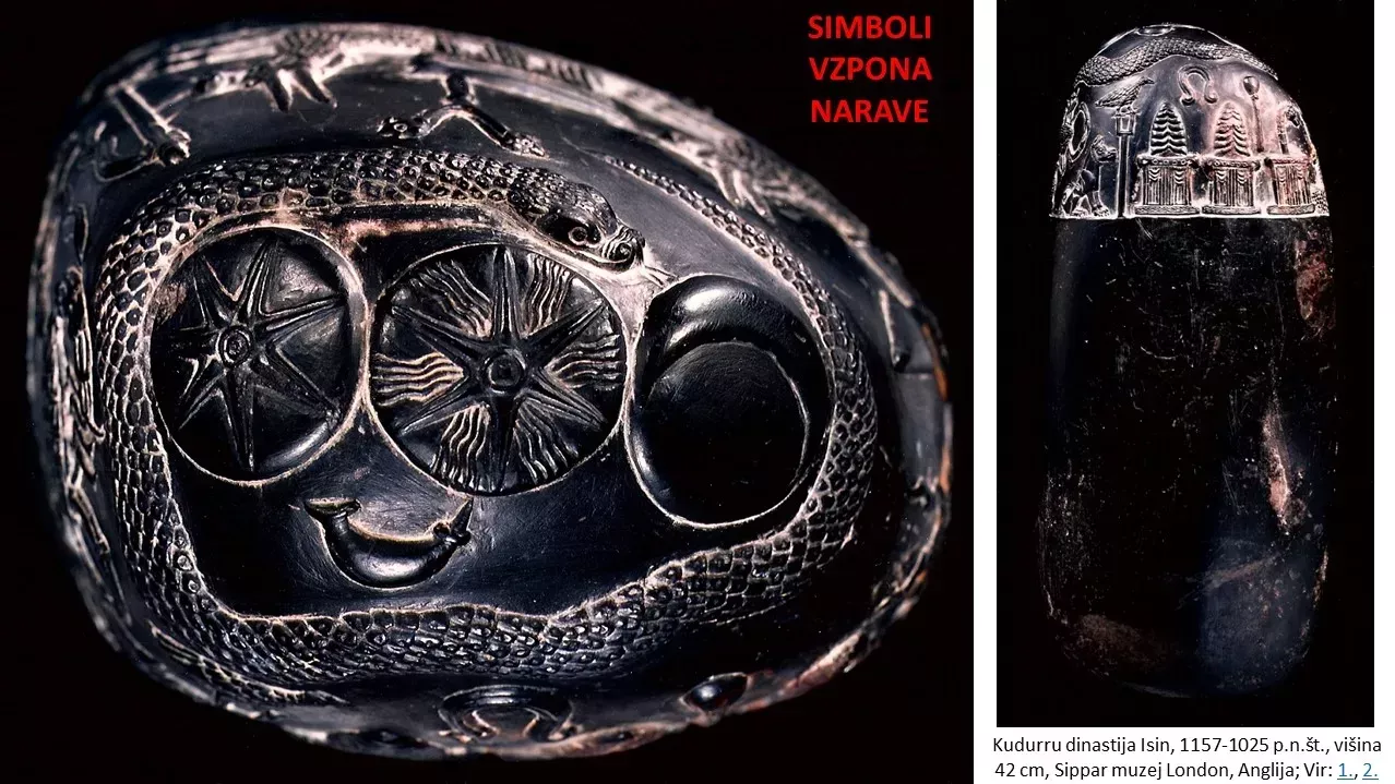 Kudurru dinastija Isin, 1157-1025 p.n.št., višina 42 cm, Sippar muzej London, Anglija; Vir: http://cmaa-museum.org/meso01.html