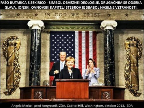 V Kongresni dvorani v ZDA so v samem središču govorniškega dogajanja in na stenah nad glavami upodobljeni FAŠISTIČNI SIMBOLI sekirice sredi butarice porezanih palic.