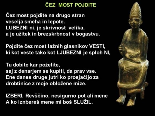 In oni na drugi strani MOSTU pokliče prvega in mu reče: "Ali bi šel ti čez most na mojo stran. Za to ti dam 10.000 EURov?"