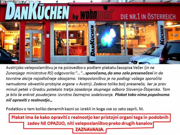 Avstrijsko veleposlaništvo je na poizvedbo časopisa Večer (in ne Zunanjega ministrstva RS) o tem plakatu odgovorilo:"…sporočamo, da smo zelo presenečeni in da tovrstne akcije najodločneje obsojamo. Veleposlaništvo je na podlagi vašega sporočila nemudoma obvestilo pristojne organe v Avstriji. Zadeva toliko bolj preseneča, ker je prav minuli petek v Gradcu potekalo tretje zasedanje skupnega odbora Slovenija-Štajerska. Tam je bilo še enkrat poudarjeno izvrstno čezmejno sodelovanje. Plakat tako nima popolnoma nič opraviti z realnostjo." Besede poudaril VS