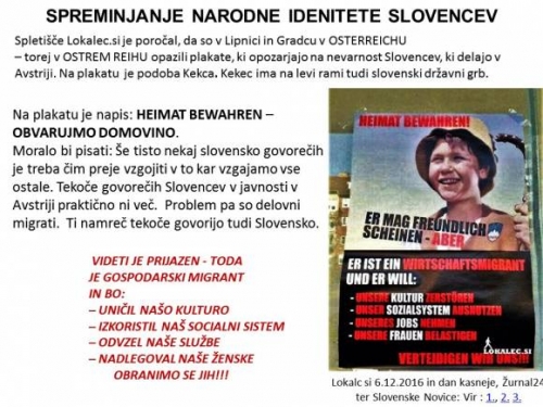 Spletišče Lokalec.si je poročal, da je občan v Lipnici in Gradcu v OSTERREICHU – torej v OSTREM REIHU opazil plakate, ki opozarjajo na nevarnost Slovencev, ki delajo v Avstriji. Na plakatu je podoba Kekca. Kekec na plakatu ima na levi rami tudi slovenski državni grb.