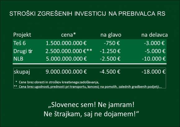 Če tega ne bi bilo bi bili stroški napačne investicijske odločitve strahoviti. Investicija bi do današnjih dni že "nasedla" zaradi vdrtja razvejanih kraških jam in kavern med katerimi so hoteli vrtati. Od 27 km proge se je načrtovalo na kraškem področju skoraj 21 km tunelov. Zato bi bili stroški že podvojeni, torej na cca slabe 3 milijarde (?). Sledile bi pritožbe sosednje Italije... zastoj pri izdelavi, v polnem zamahu bi se gradila vzporedna proga izven slovenskim meja, sledil bi prevzem Luke Koper, morda se jo še lahko podari Nemčiji, Avstriji, Madžarski, Hrvaški...