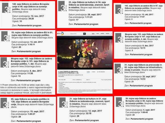 Ahivski posnetki sej DZ RS so na RTV ogledovani od 3 – 50 krat, redke večkrat, pa še to v petinski minutaži. Delovanje RTV Slovenija ocenjujem za porazno.