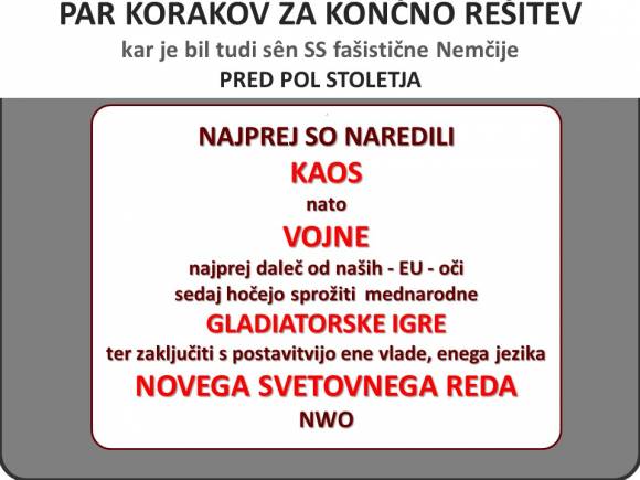 In če se ozremo k modelu sistematičnega uničevanja slovenskih vitalnih podjetij ter sistematičnemu branjenju NEDOTAKLJIVOSTI bančnih, arhivskih ipd LUKENJ, potem nas je lahko lastnih oblastnikov GROZA. Niso samo nesposobni iztrgati se iz prijemov združb, ki jih držijo v šahu, niso niti sposobni javno priznati, da je SLOVENIJA postala KOLONIJA. Če bi priznali svojo popolno nemoč in zgolj igralstvo, ko na političnem parketu samo izvajajo ukaze s strani interesnih skupin iz ozadja, bi se narod lažje postavil na lastne noge. Tako pa z zavestnim zavajanjem delajo zločin proti narodu in možnostih nadaljnjega razvoja.