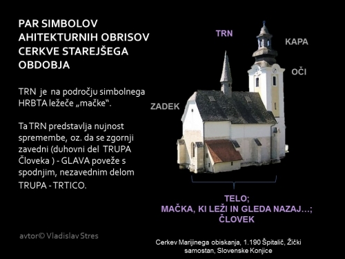 M.G.: Te cerkve, ki imajo še en stolp na strehi ladje, poznam nekaj. Eden je na sv. Primožu nad Radljami ali Muto, za druge sem pozabil. Kaj naj bi to pomenilo?