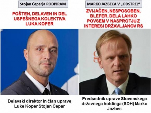"Delavski direktor in član uprave Luke Koper Stojan Čepar je izjave predsednika uprave Slovenskega državnega holdinga (SDH) Marka Jazbeca na petkovi seji komisije za nadzor javnih financ DZ glede previsoko planiranih stroških dela v Luki Koper v obdobju 2016-2020 označil za zavajanje in laži.