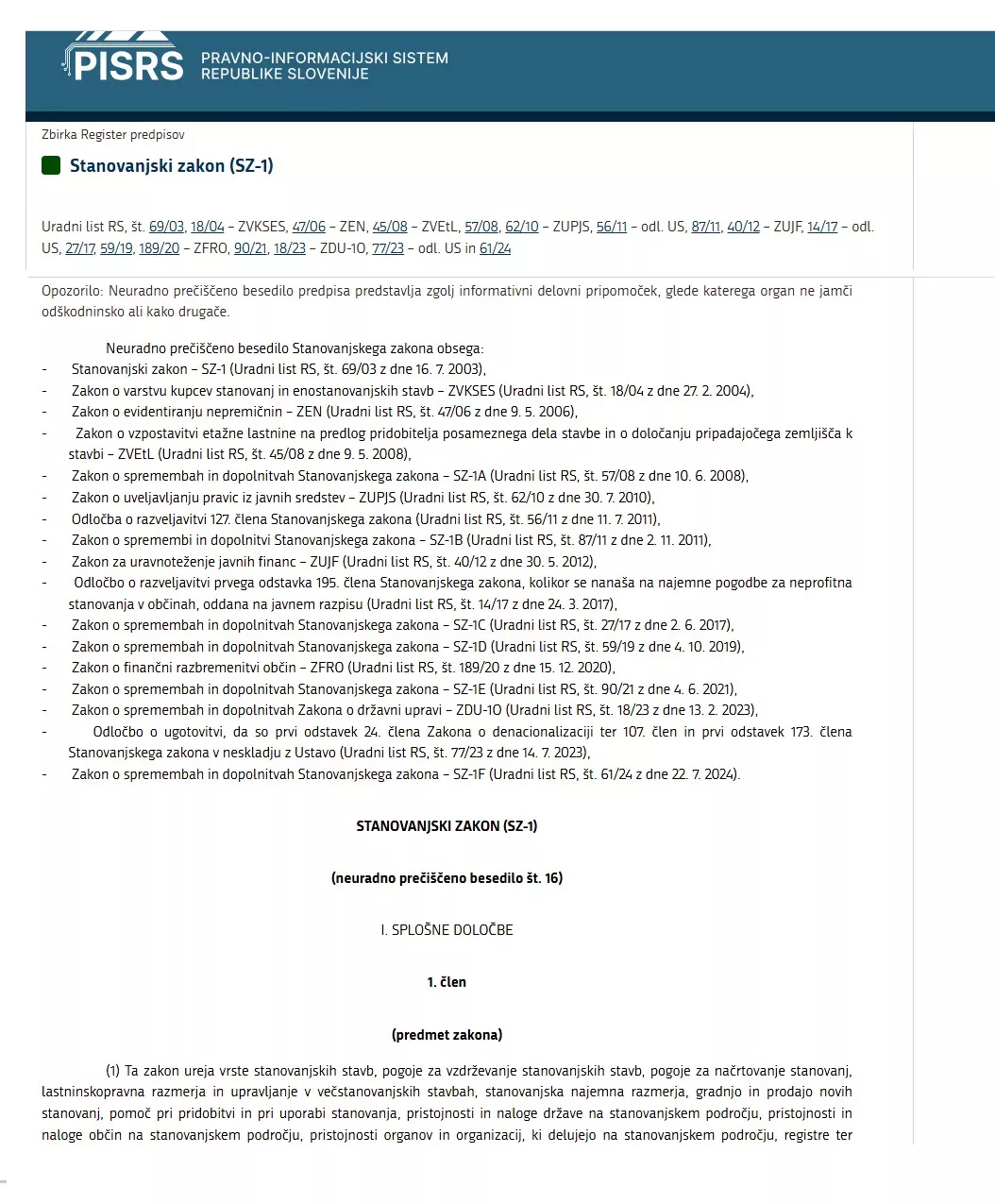 Glejte tudi: Stanovanjski zakon, neuradno prečiščeno besedilo: