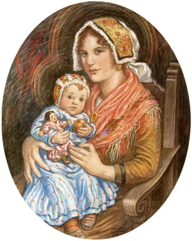 Narodna Madona, portret žene Fani s hčerko Bredo, 1918