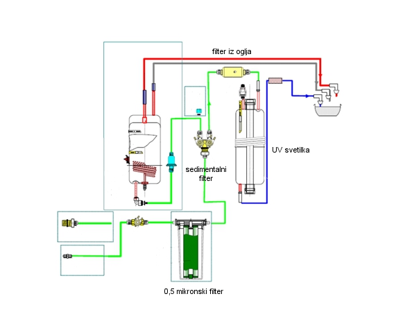 filtrov in UV luč odstranijo iz vode škodljive bakterije ter druge onesnaževalce.
