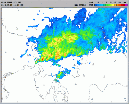 "V severni in delu osrednje Slovenije je dopoldne padlo padlo od 15 do 60, ponekod na območju Posočja pa od 100 do 170 litrov dežja na kvadratni meter. Pas močnih padavin se pomika proti jugu. Deževje se bo predvidoma nadaljevalo do drugega dela noči, a dež bo ponoči počasi slabel in do jutra povečini že ponehal." (Vir: ARSO) VEČ>>