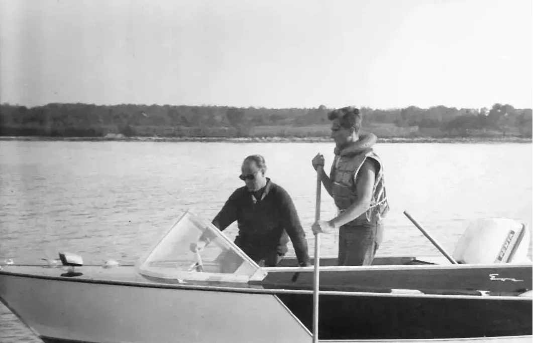 Ko sem se v šestdesetih letih zaradi poribljavanja, zaradi ihtioloških razlogov začel potapljati, sem potreboval čoln. Kupil sem sestavne dele za čoln nemškega izdelovalca Eva kit, ki ga je bilo treba samo sestaviti. Pripeljal sem ga v Polje, kjer ga je moj brat, ki je izjemno spreten, kot ko- maj štirinajstleten mulc sestavil. Čoln je bil dolg štiri metre in pol, z njim smo tudi smučali na vodi.