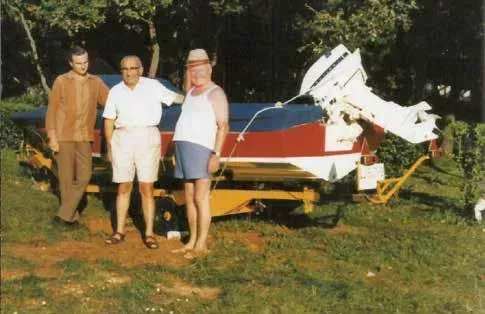 Marko, oče Ciril in Kosta pred čolnom Rio