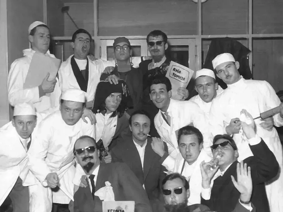 Božo in Sašo spredaj (s temnimi očali) v 5. letniku, pust 1960