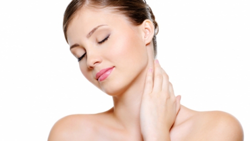 1. Začnite tako, da pogled usmerite naravnost pred sebe, s prstnimi blazinicami ene roke pojdite po koži od čeljusti navzdol po vratu in trdno oprimite kost ključnice.