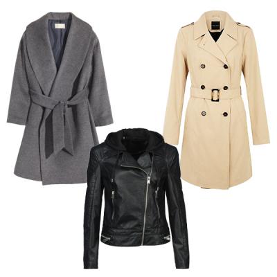 Plašč H&M (79,99 €), jakna New Yorker (49,95 €), trenč plašč New Look (49,99€)