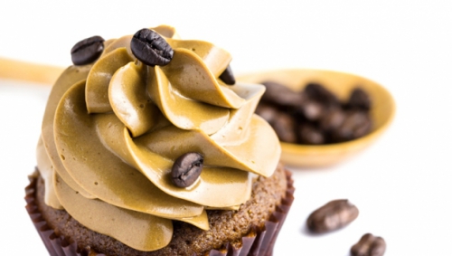 Sprostite se ob čokoladnih kolačkih s čudovito aromo dišeče kave in okrašenimi z masleno kavno kremo. Uživali boste med peko in pri jedi!