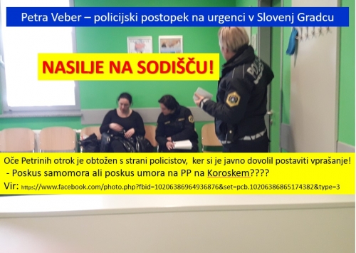 Celo poskušali so se je znebiti preko psihiatrije s pomočjo sodnice, k sami sreči smo jim zadnji trenutek to preprečili. Povod vsega je, da je oče Petrinih otrok prepovedal tajnemu policijskemu sodelavcu vstop v gostinski lokal katerega je vodila, ker je ovajal goste. Od takrat naprej preko uradnih oseb s pomočjo sistema uničujejo družino Petra Veber iz Koroške. Ne smemo biti več tiho, zato se javite na ziviscit@gmail.com
