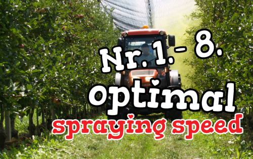 Many fruit farmers state that the best deposit is achieved with lower driving speeds. The majority of fruit farmers (lots in Austria and in Germany) spray with driving speeds up to 12 km/h. Why they can do it? Why apparently it isn’t working in Slovenia? Their yield isn’t of lower quality than ours. But they have more free time, or in the same time they can spray additional hectare or even more. The purpose of the experiment is to show everybody that easily many things in spraying can be made other way with same or better results. If this results in more free time and less cost, then this is especially cool.