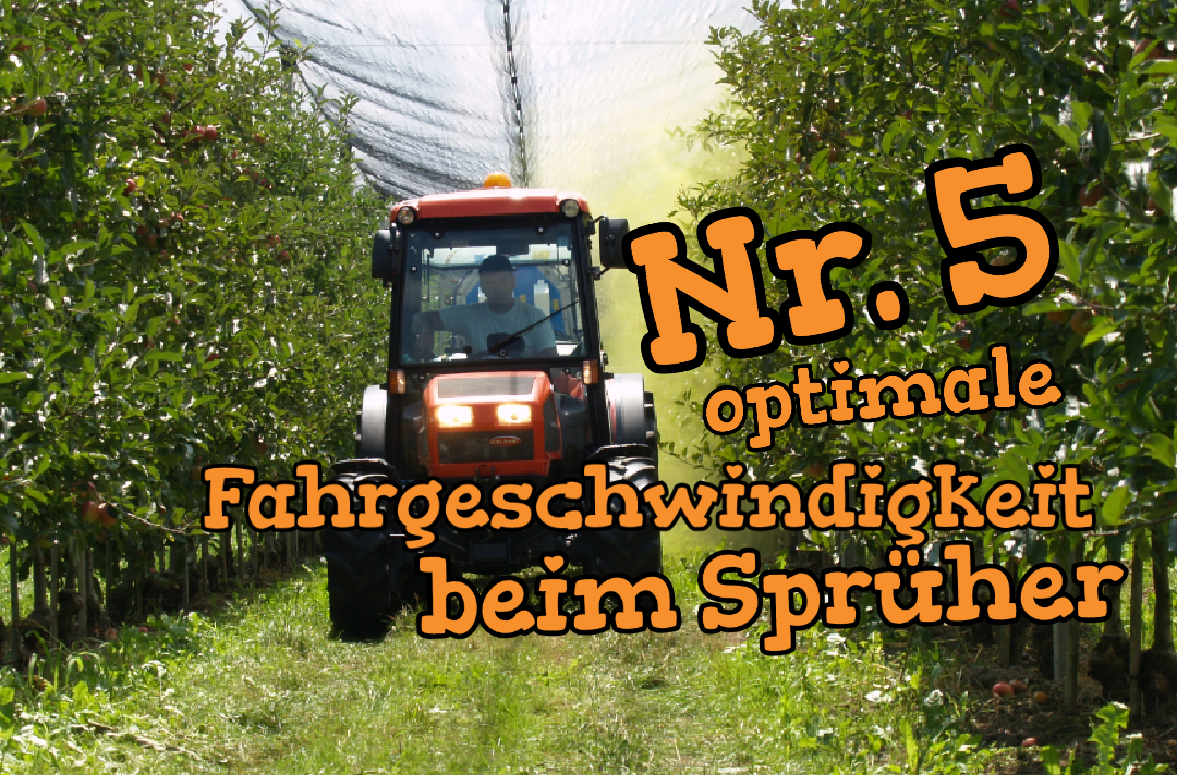 WARUM kommt es zu solchen Ergebnissen? Die in der Versuch verwendete Maschine hat ein anderes Prinzip der Luftverteilung (kleinere Luftgeschwindigkeit, sehr verwirbeltes Luft), deswegen ist der Sprüher auch etwas empfindlicher für Änderung der Geschwindigkeit, was besonders in Jonagold Plantage gut zu sehen ist. Um bessere Ergebnisse zu erzielen, soll man bei erhöhter Geschwindigkeit auch die Luftmenge erhöhen mit mehr Umdrehungen der Kardanwelle.