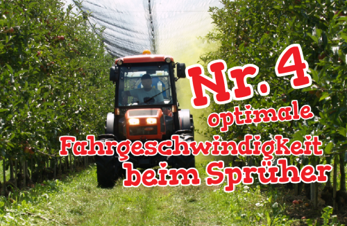 Die Entscheidung über die Erhöhung der Spritzgeschwindigkeit hängt von der Interaktion zwischen den Gebläsesprüher, Charakteristik der Luft, Luftmenge, Typ der Plantage und Düsen die wir benutzen ab. Mit der Erhöhung der Geschwindigkeit sollten wir auch die Kapazität des Ventilators erhöhen. Je schneller wir fahren, großer sollte die Luftmenge sein.