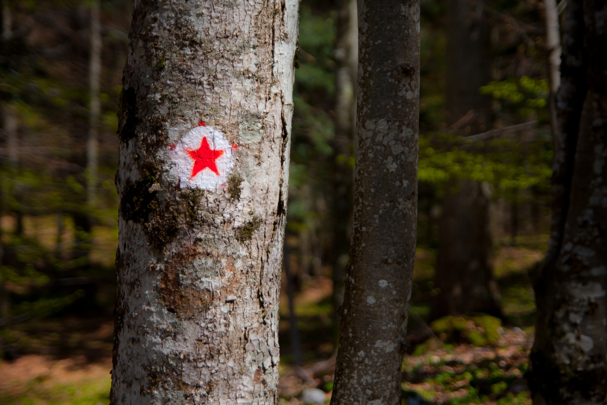 Markacija, bel krog in rdeča zvezdica (bel krog predstavlja kosem vate, zvezdica pa partizanske korenine), nas pelje po stezi proti prvi partizanski bolnišnici Kremen. Opis bolnišnice si lahko preberete na info tabli ali pa v zloženki, za katero povprašajte na Mirni gori.